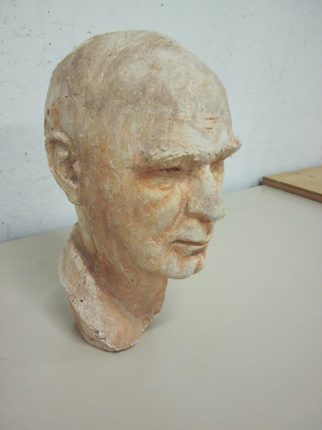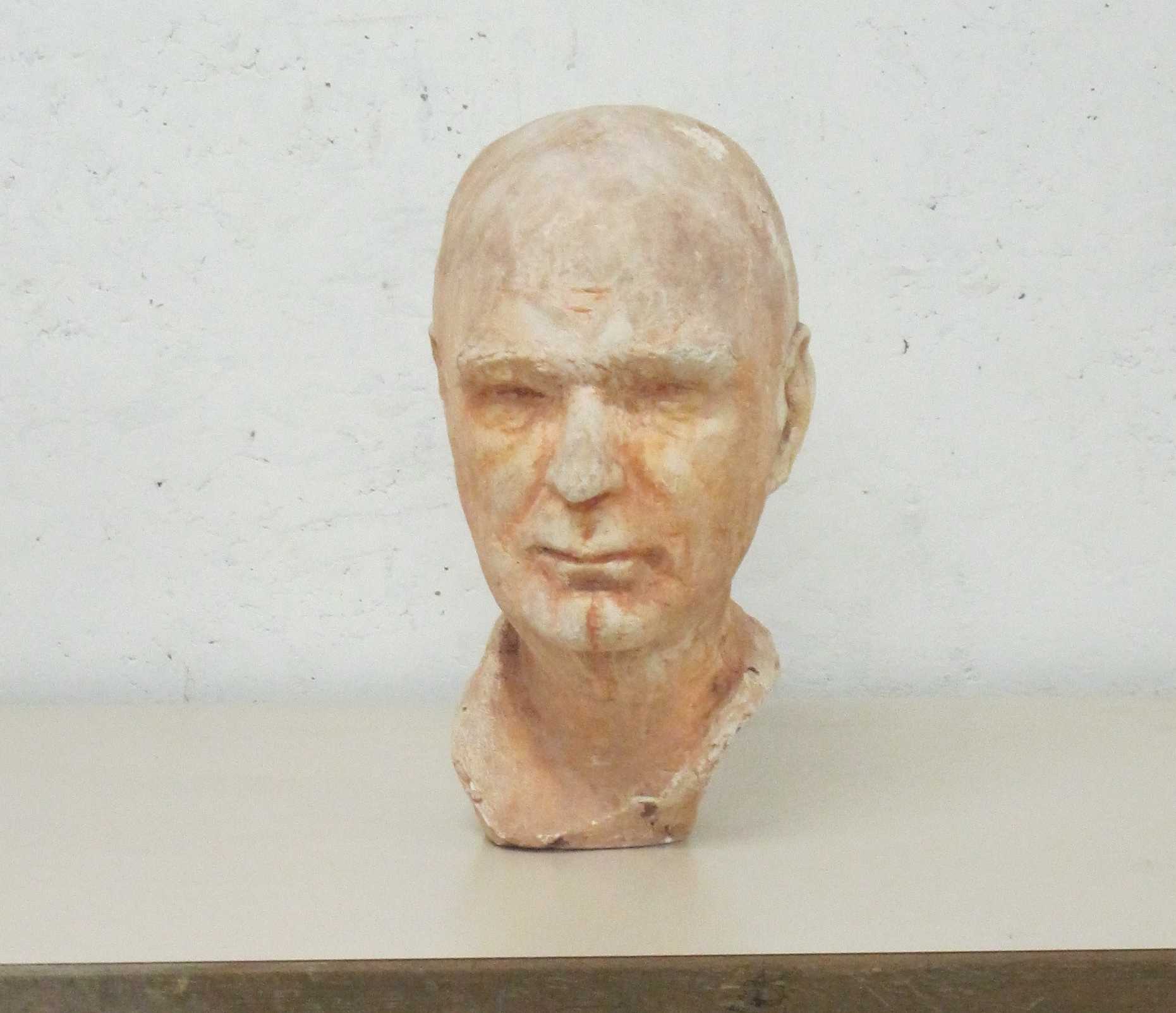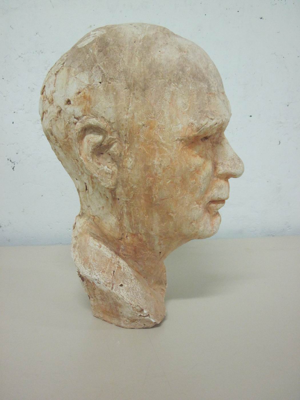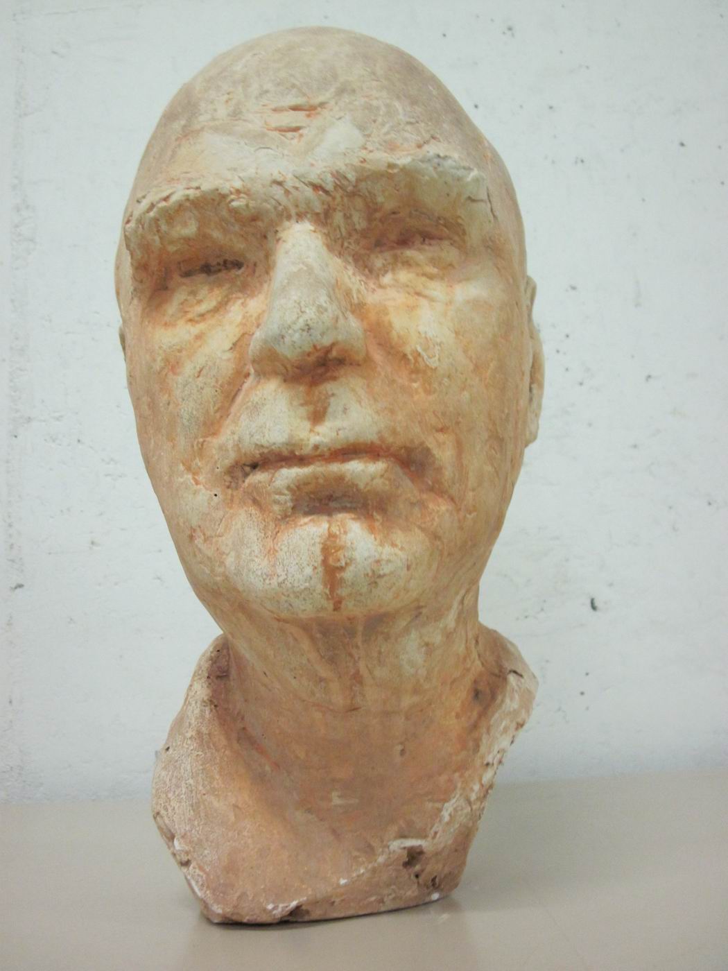 Nach Aussage von Anwesenden, welche anlässlich der Herstellung der gezeigten Fotoaufnahmen mit Restaurationen am Ort der Aufnahmen beschäftigt waren, handelt es sich hier um den Kopf eines Unbekannten, welcher angeblich beim Modellieren bei Probst in Peney in der Nähe von Genf nicht still sitzen konnte und dann diesen Kopf auch nicht entgegennehmen, nicht haben und nicht behalten wollte, worauf ihn angeblich eine öffentliche Institution geschenkt bekam, welche ihn jetzt zu ihrer Sammlung zählt. Dies sei vermutlich um 1963 geschehen (anlässlich der Auswahl von Großplastiken für größere öffentliche Gebäude in Dreiland). Unglaublich, wie Probst es geschafft hat, dem Material eine Psyche einzuhauchen, so dass es scheint, im Gips sein noch Leben drin! Es handelt sich bei der Figur um eine Großausführung in etwa drei bis vierfacher natürlicher Größe. (Probst soll nach der Aussage eines Anwesenden angeblich bemerkt haben: "Damit man ihn nicht übersieht.") Probst hat viele Großfiguren geschaffen. Ist eine große Figur einfacher zu machen - oder schwieriger - als eine kleine Figur? |