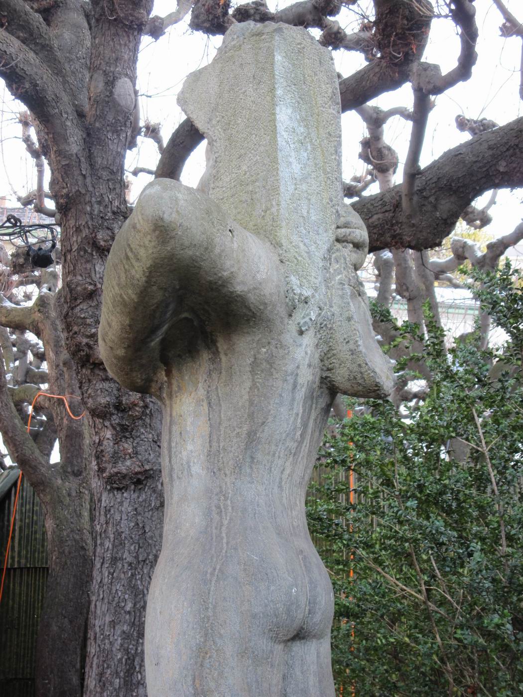 ist die Skulptur an der Gartengrenze sehr unvorteilhaft
