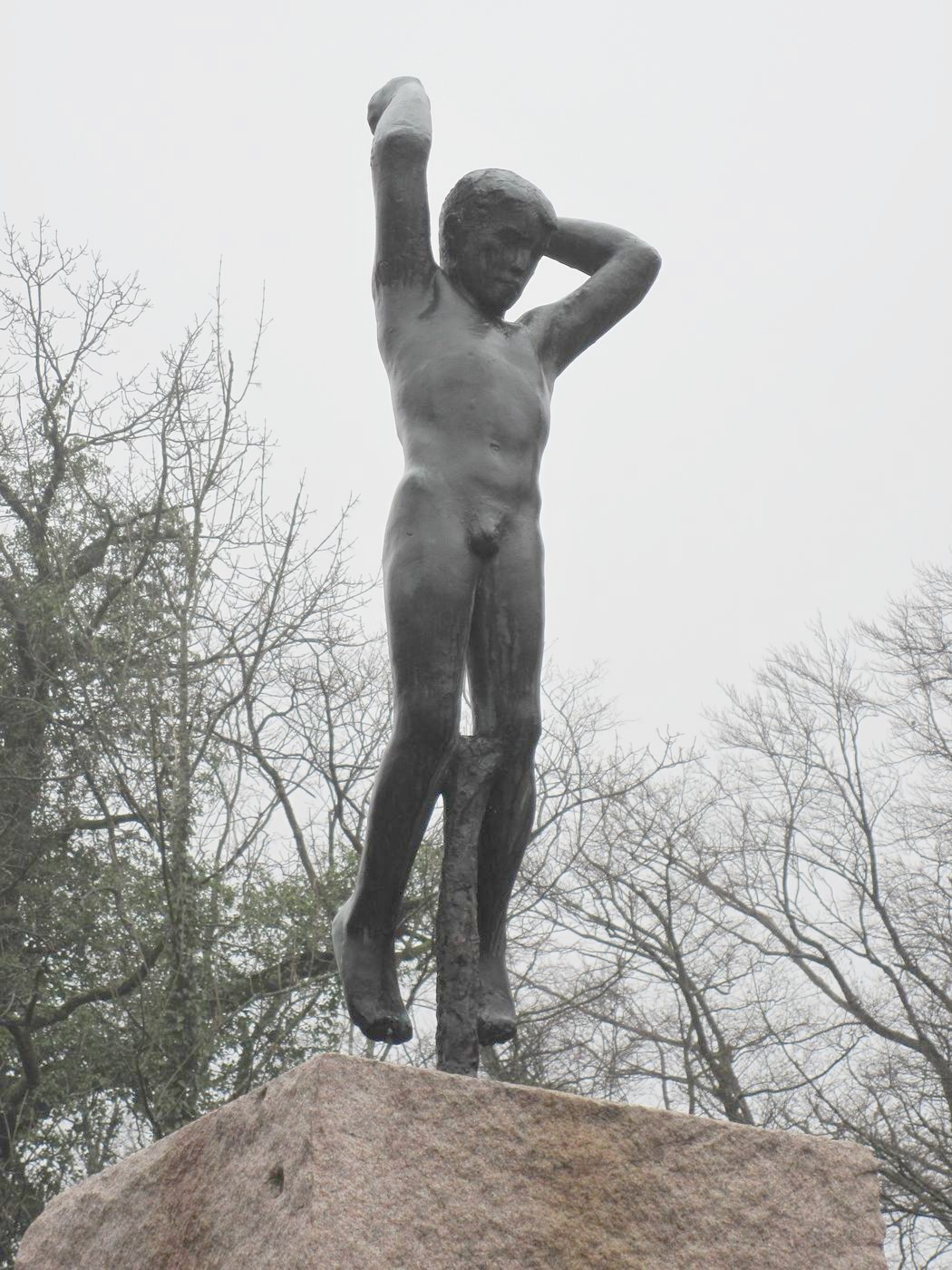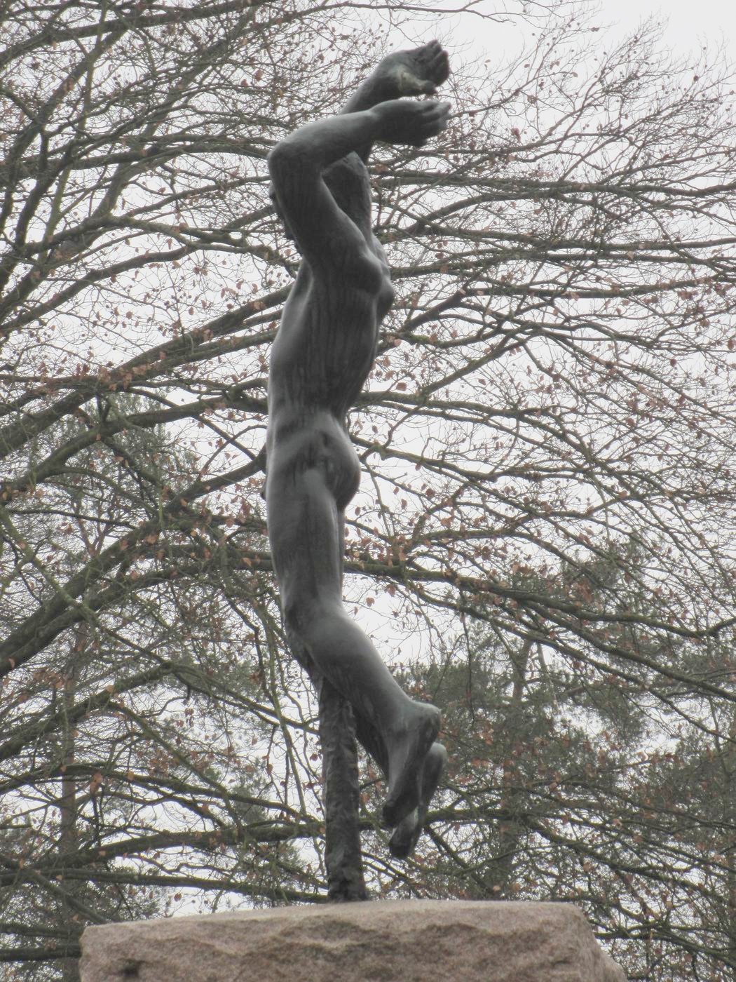 Genius - oder der Fliegende - und der Feuergott (in Stein): Als Schmuck einer Gedenkstätte und auch als Bild des Künstlers: Er schwebt zwischen Himmel und Erde, zwischen Kunst und Realität. An einer Gedenkstätte lässt es die Anwesenheit der Seele oder der Psyche eines dahingeschiedenen Menschen empfinden, mit der Wortwahl je nach dem eigenen Verstehen Hier sehen wir ein großes Meisterwerk! Ursprünglich stand der Genius als Depositum im Garten des Kollegienhauses der Universität Basel. |