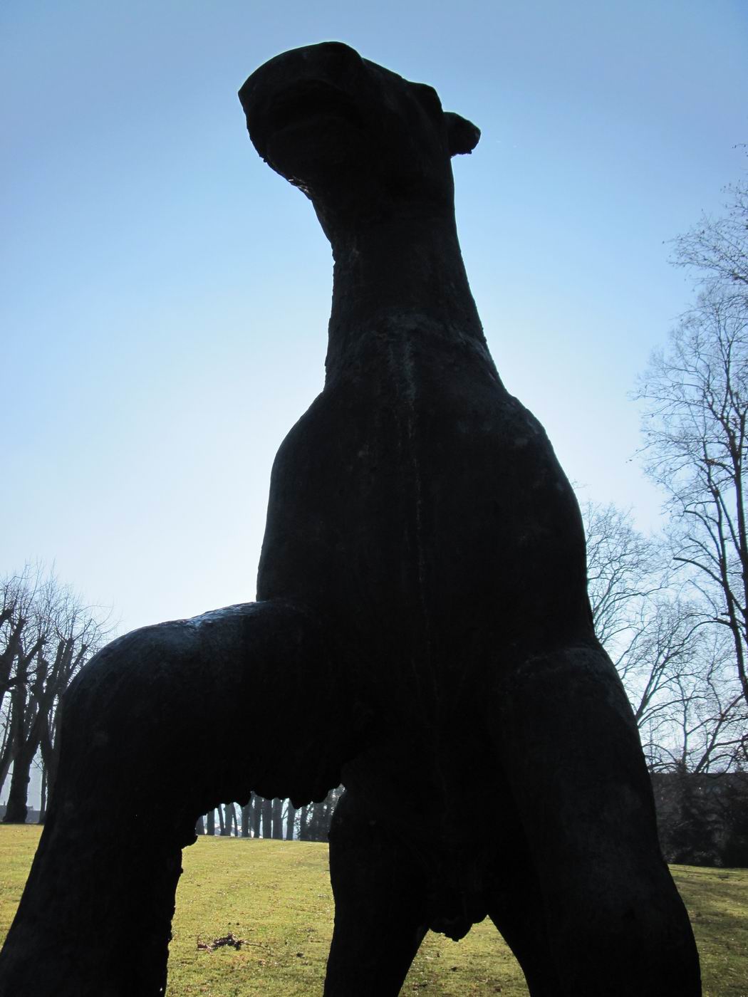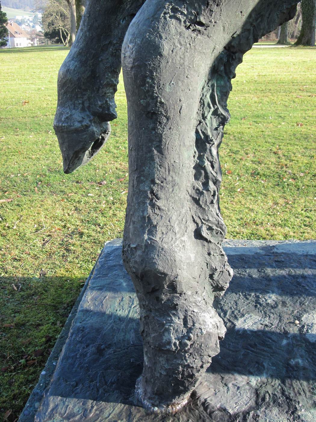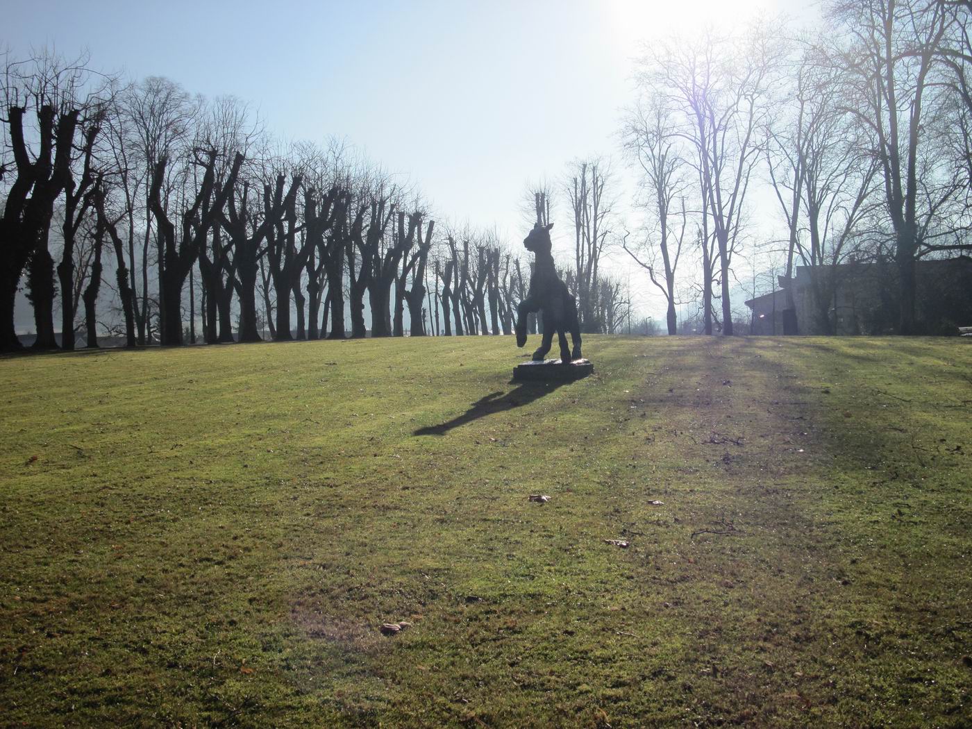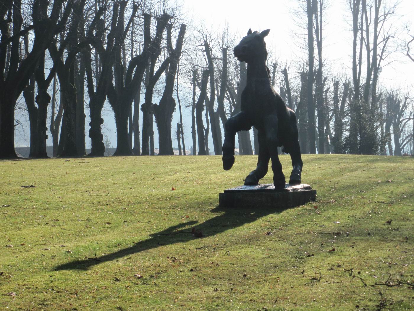 1965: Der Kanton Baselland beschließt am 13.9.1965 eine Ehrenausstellung im Schloss Ebenrain (Sissach) zu Ehren des am 17.8. 1965 nun 85 Jahre alt gewordenen Bildhauers Jakob Probst durchzuführen. Zum Anlass dieser Ehrung sprach der Kanton einen Kredit von damals sFr. 60'000.- für den Ankauf des Puledro (überlebensgroßer jungen Hengst, Bronze, gegossen in Mendrisio) zur längst fälligen Ausschmückung des Kantonsspitals. Das Geld wurde gesprochen für den künstlerischen Wert, den Guss des Werkes, den Transport nach Liestal, die Aufstellung (Anm.: damals) in der genannten Anlage. Damals konnte man sich für diese Summe auf dem Lande ein Einfamilienhaus kaufen. |